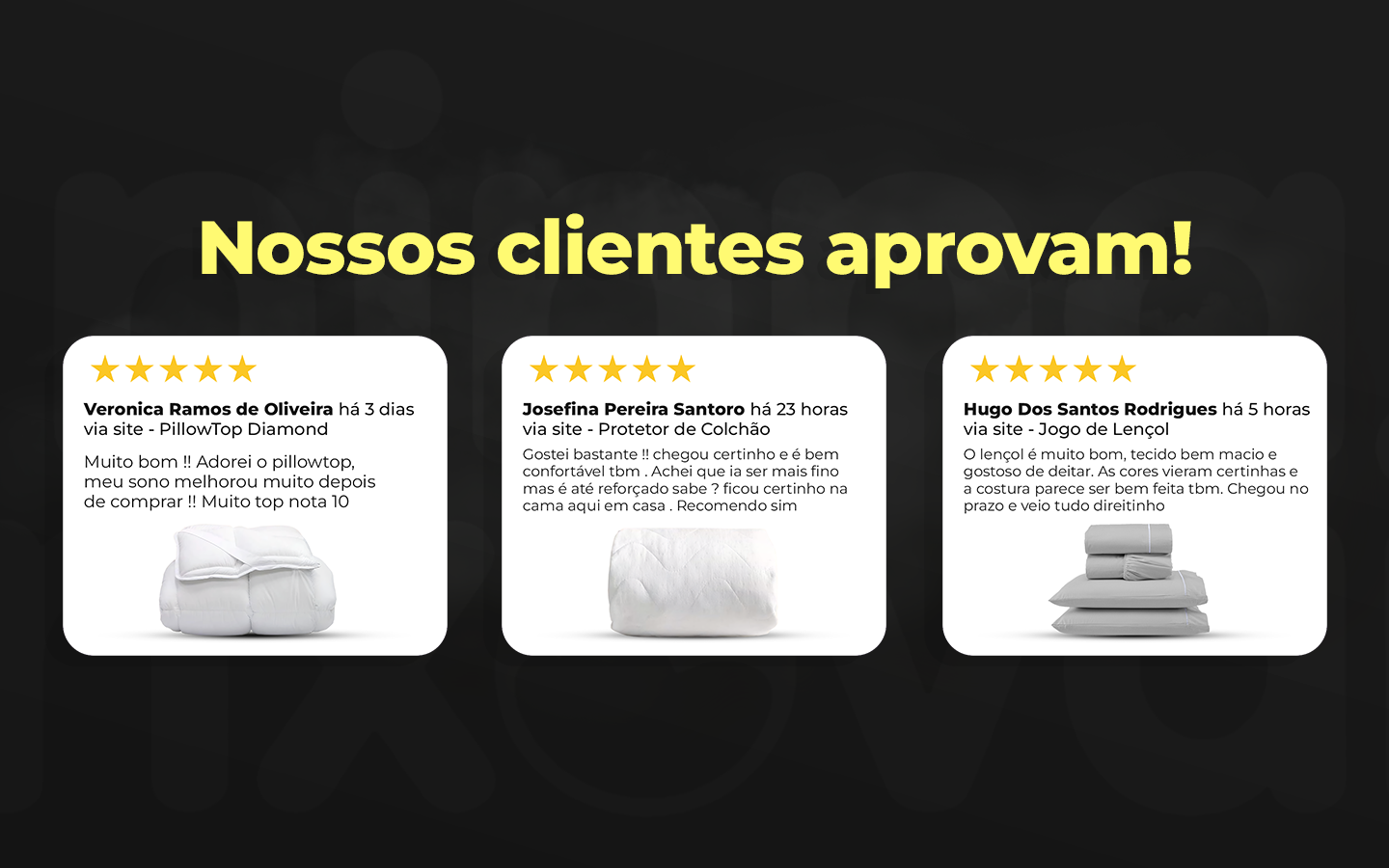 Uma nova camada de conforto. Adicione maciez à sua cama com nossos Enxovais de Alto Padrão, ideais para renovar o colchão e deixar o descanso ainda mais prazeroso.